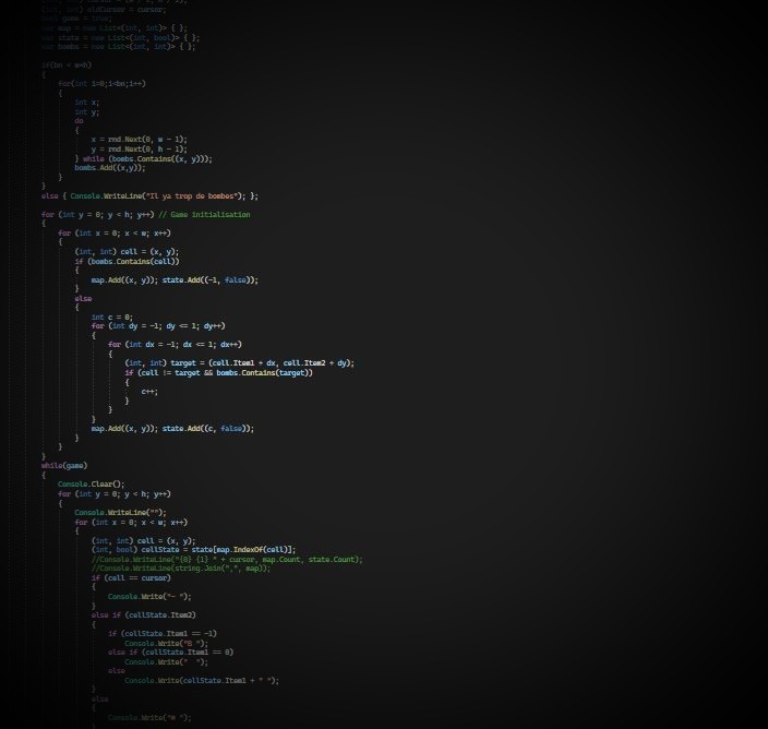Un dernier exemple, le célèbre démineur. On peut choisir la taille de la grille et le nombre de bombes.